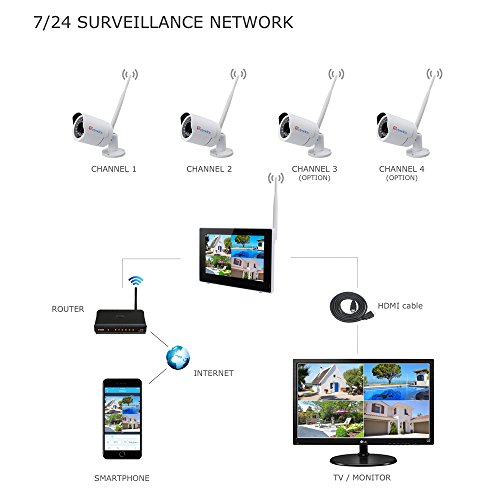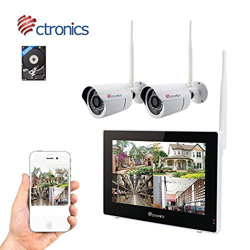 (TOUCH SCREEN)Wireless Camera System Home Security Camera Set(720p)Two Wi-Fi Video Surveillance Cams Real-Time Touchscreen Monitor|Motion Detection,Night Vision|Indoor/Outdoor|Phone Remote/500G HDD