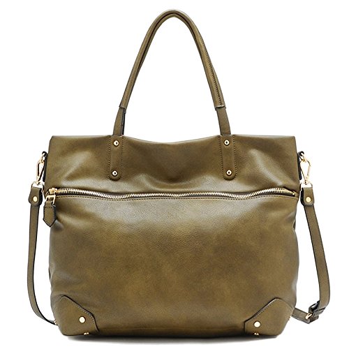 Made synthetic leather with gold-tone hardware. Front and back zip wall pockets for easy access. Single carrying handle and zip top closure. Spacious fully lined fabric compartment. Interior zip and slip pockets. BEFORE PURCHASING, PLEASE COMPARE THE SIZE OF THIS HANDBAG TO ONE OF YOUR OWN FAVORITE BAGS.Feature