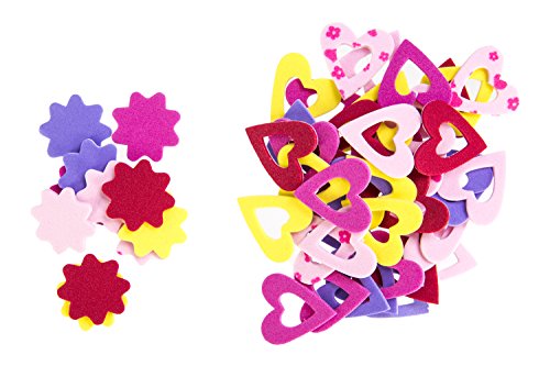 SAFE, NO HASSLE: Undertaking an arts and crafts project can be stressful enough without the annoyances of paper cuts, scissor scrapes, sticky glue, and other hassles. Our Hearts and Flowers Foam Stickers are made out of gentle materials and are completely safe. Plus, there's no setup or hassle like many other arts and crafts tools. Simply take them out of the package and get to work!