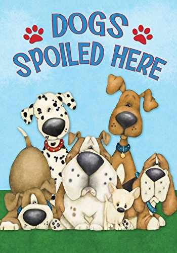 Dogs Spoiled Here House Flag Everyday Humor Bulldog Dalmation Hounds 28" x 40"