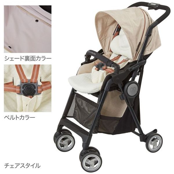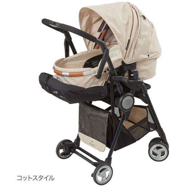 ●新生児ではフルフラットのコットンスタイルでその後、コットを取外し軽快なチェアスタイルの変えられる3歳までのロングユース設計となっています。