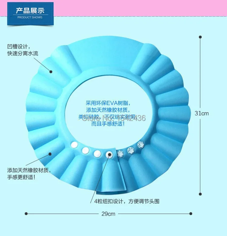 Age Group:Babies Pattern Type:Solid Age Range:< 3 years old Material:Soft Eva material Size:Resizable Material Type:PE Model Number:E030 Place Of Origin:China Freight:Free Shipping Name:Baby shower cap Material:Soft Eva material Color:Pink , Blue . Yellow