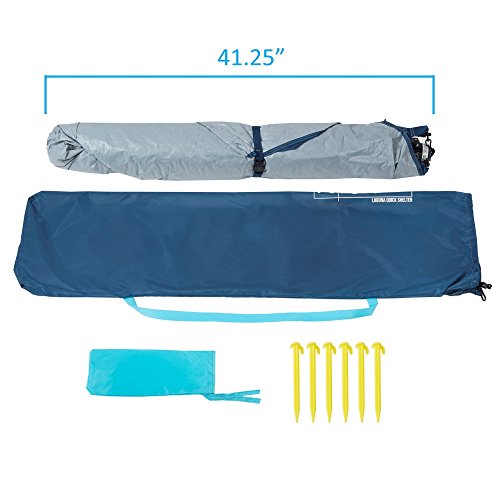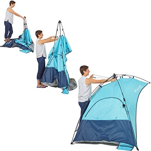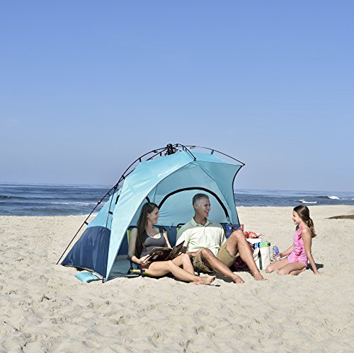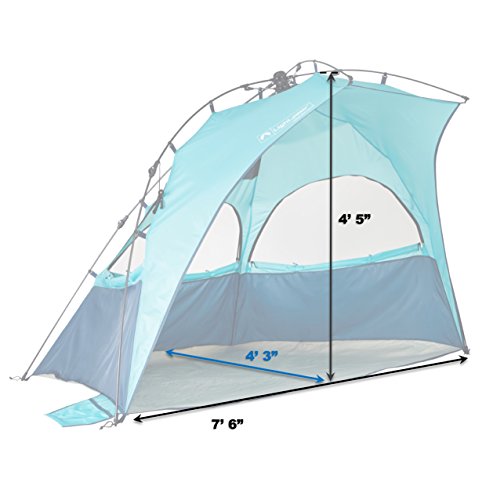 Easy up and down patented hub system makes this beach tent as refreshing as a cool pacific breeze with maximum UPF 50+ sun protection
