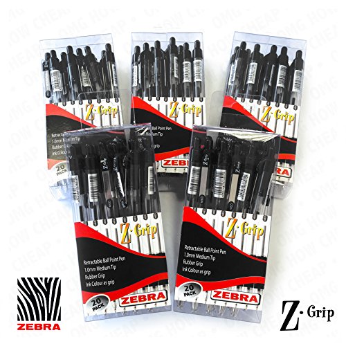 -. Feature : The Z-Grip is Zebra best selling Retractable Ballpoint. / Transparent barrel allows constant monitoring of ink consumption. / Economy pack of 100 Black Z-Grips, consisting of 5 plastic branded boxes, each containing 20 pens. / 1.0mm nib writes a 0.7mm line. / Features a rubber "Comfort Grip" and metal clip.