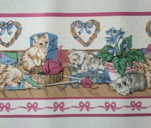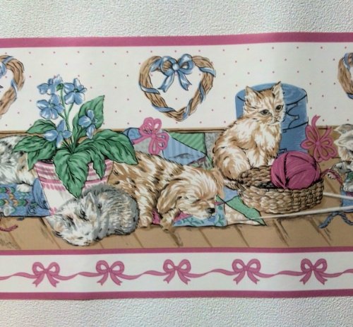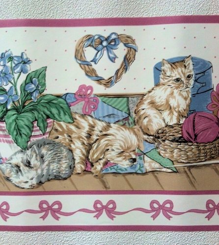 -. Title : Kittens and Puppies Wallpaper Border – Pink