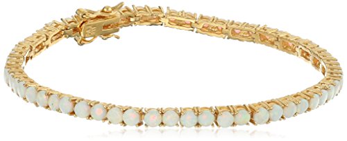 -. Title : 18k Yellow Gold Plated Sterling Silver Round Created Opal 3mm Bracelet, 7.25"