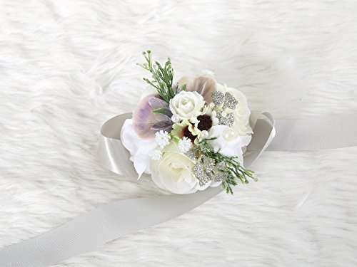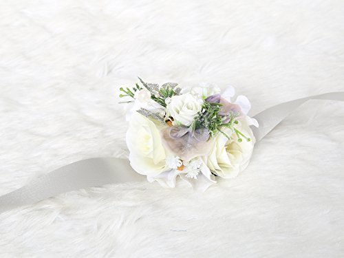 Bridesmaid Wedding Wrist Corsage Rose Flower Decor Ceremony Party (Gray)