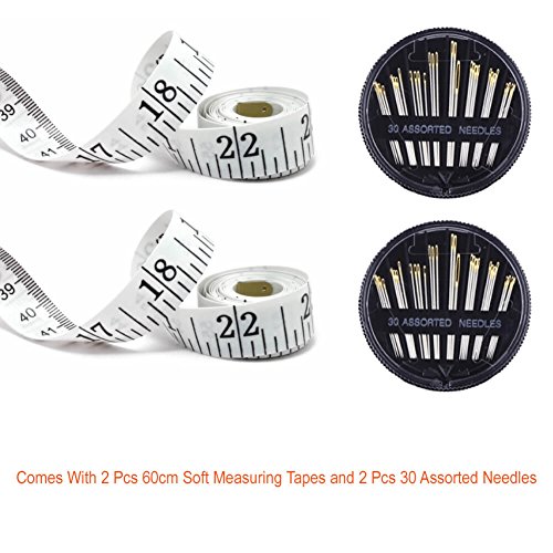 BONUS – Comes with 2 pcs double scale measuring tapes with 60” in length and 2 boxes of assorted sewing needles with large eye, totally 60 pcs metal stitching needles for sewing and craft using