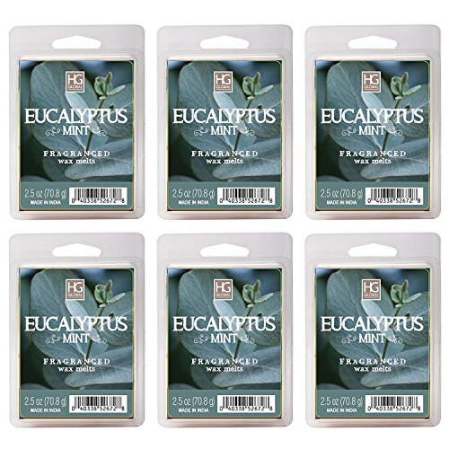 Hosley's Eucalyptus Mint Wax Cubes - Set of 6 / 2.5 oz each. Hand poured Wax Infused with Essential Oils. Perfect for Everyday Use, Wedding, Events, Aromatherapy, Spa, Reiki, Meditation. O4