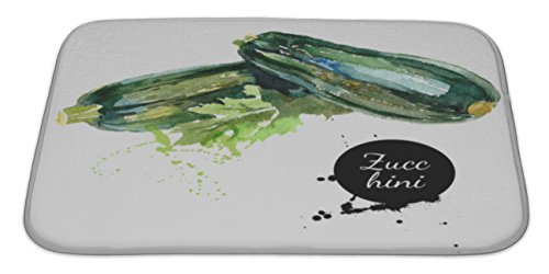 Gear New No Slip Microfiber Memory Foam Zucchini Hand Drawn Watercolor Painting on White Bath Rug Mat, 34" X 21"