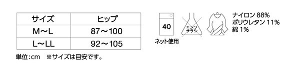 M~L(ヒップ87~100cm) L~LL(ヒップ92~105cm)