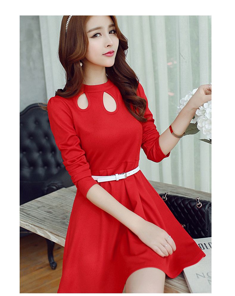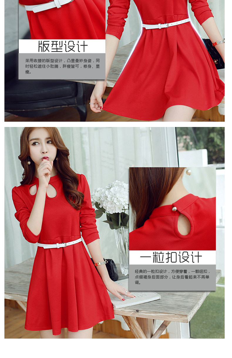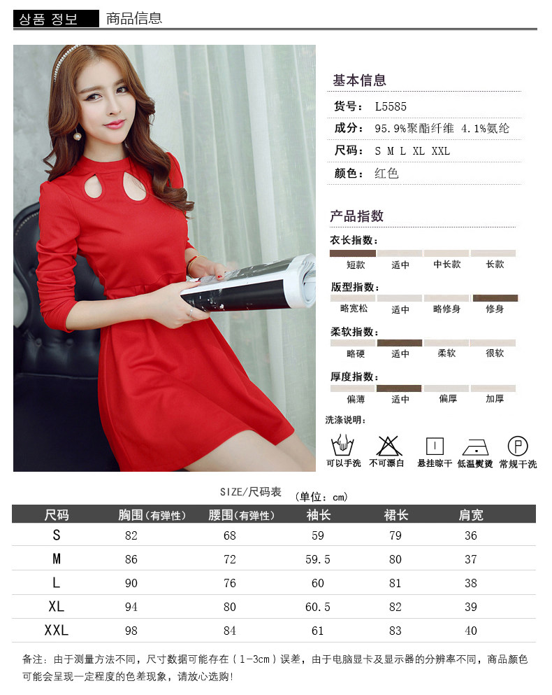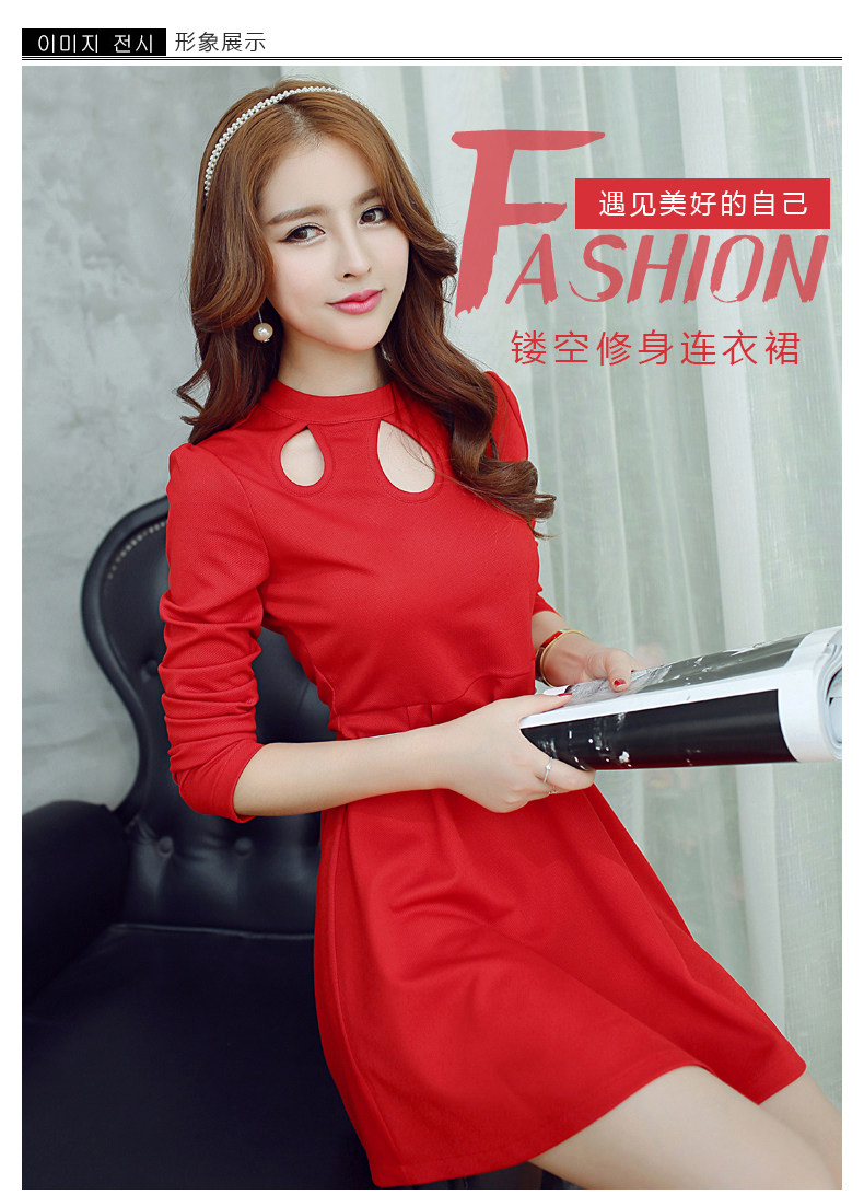春夏新款韩版女装大码时尚镂空修身收腰长袖针织连衣裙