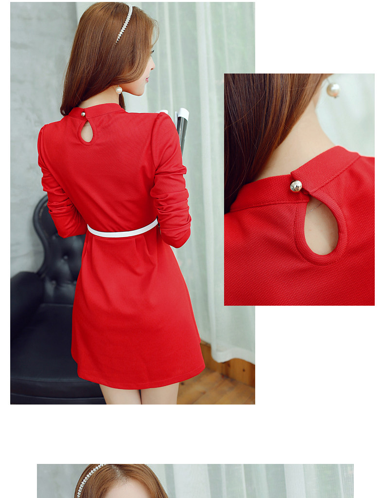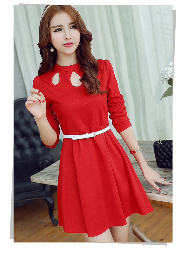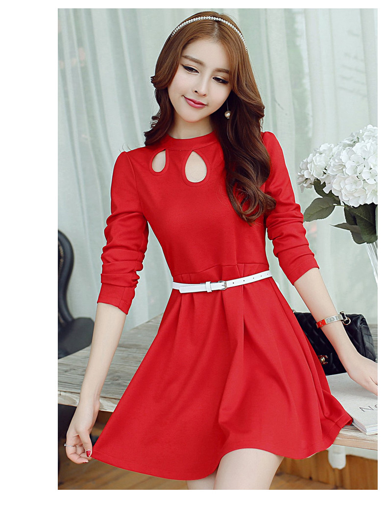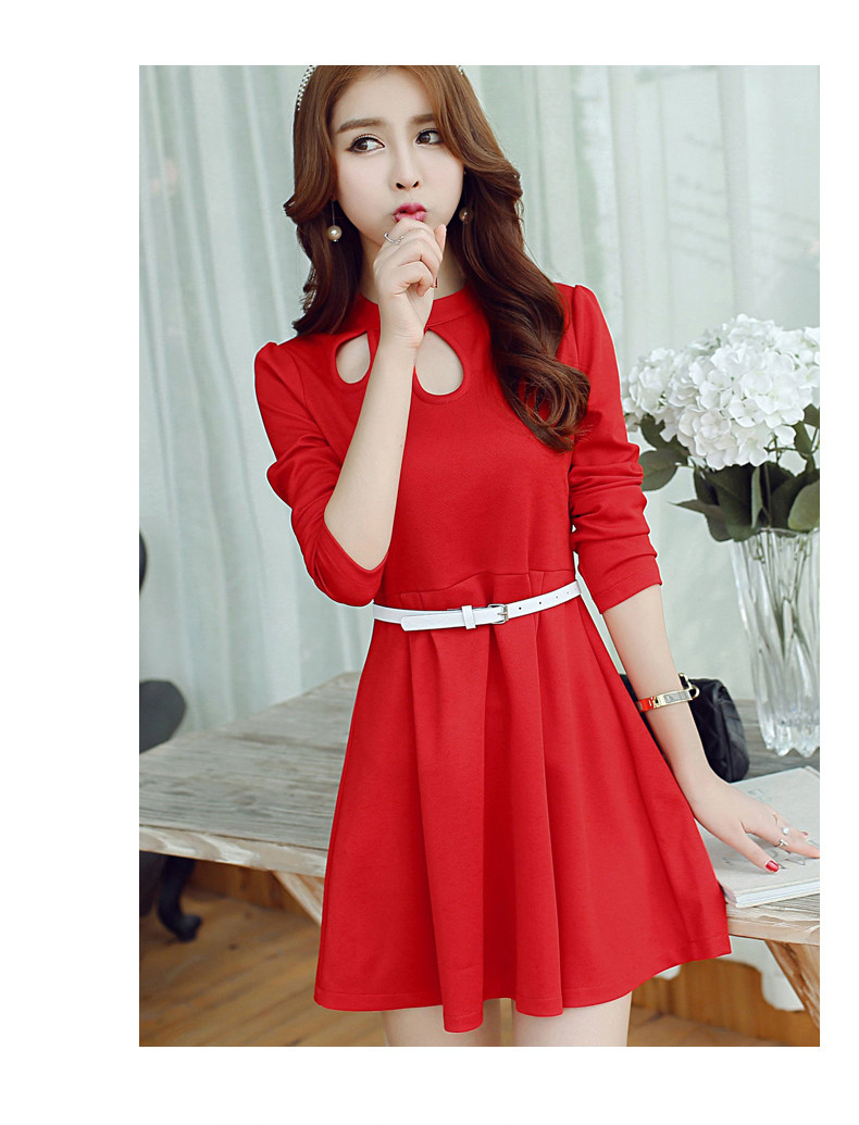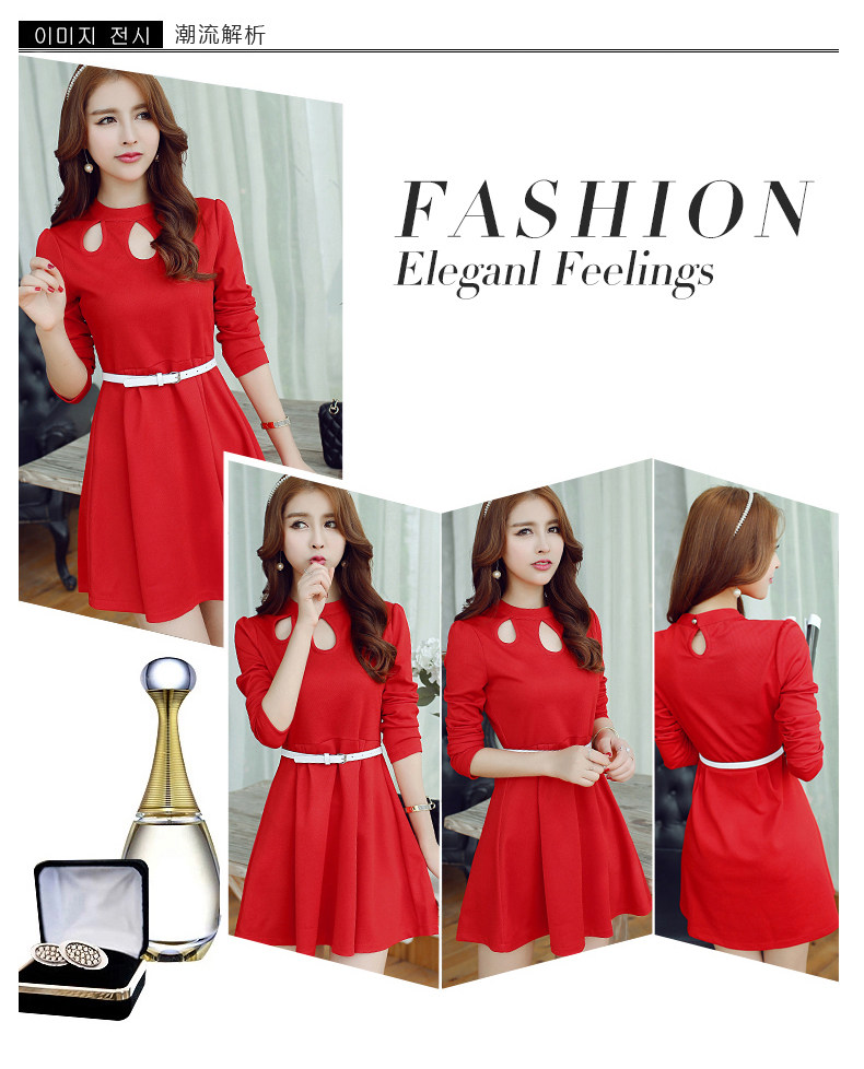 春夏新款韩版女装大码时尚镂空修身收腰长袖针织连衣裙