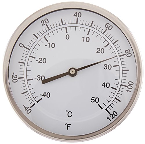 PIC Gauge B5B4-AA Stainless Steel Bimetal Thermometer with Back Connection, 5" Dial Size, 4" Stem Length, -40/120° F and -40/120° C Temperature Range