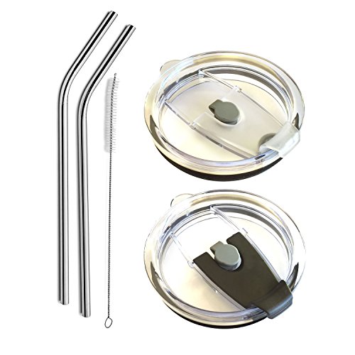 - >>>The package includes a set of 2 30 oz spill proof lids + 2 bent stainless steel straws(10.2 inch) & a cleaning brush