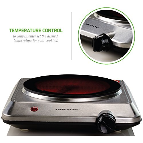 Ovente’s Cooktop Burner uses Infrared Technology, which produces top-of-the-line performance WITHOUT any cookware restrictions, unlike induction cooktops which require special cookware. Through this, it heats up very quickly AND evenly, directing air flow away from your food, leaving no cold or hot spots. It features a thermostat control knob to conveniently set the desired temperature for your cooking.