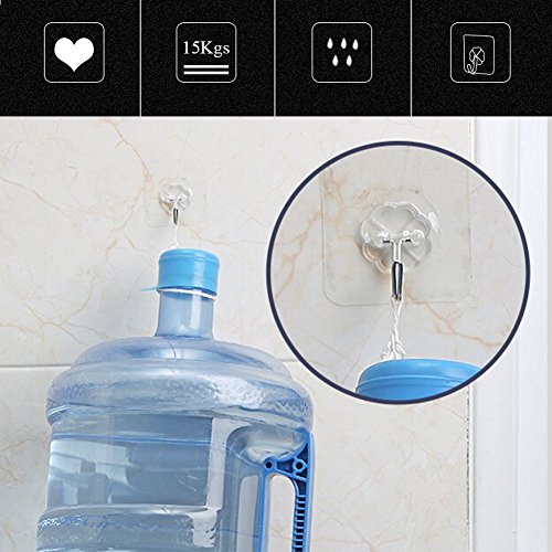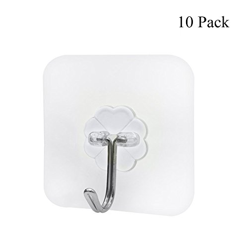 TTVOVO 33lb/15kg(Max) Nail Free Transparent Reusable Heavy Duty Wall Hooks for Towel Loofah Bathrobe Clothes, No Scratch, Waterproof and Oilproof, Bathroom Kitchen Wall hook & Ceiling Hanger - 10Pack