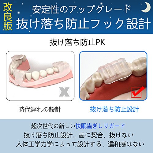 [Bruxism to measures and prevention] been developed by applying the treatment of bruxism, easy to give than mouthpiece, it is a new bruxism guard finished the structure to fit in not a deviation than the other products. [Easy installation-type up unnecessary] type up in one size fits all unnecessary! You can immediately use. To prevent bruxism can be safe and comfortable sleep. Not only prevent damage to the teeth, it will lead also to reduce fatigue of the jaw and shoulder. In order to mitigate the impact at three points of the new type of 3-point Bearing dispersion structure] anterior-posterior teeth, absorption of the shock it has also been improved. Strong impact because it further employs a unique wave plate structure is in strong back teeth of shock (wave structure) was also well up durability can be absorbed. Rather than covering the entire tooth as mouthpiece [fit without discomfort], to achieve free fit discomfort to absorb the shock of three back teeth, front teeth pinpoint, extreme stress when mounted we kept up. [Safe and can be safely used] This product is adopted EVA resin that meet the safety standards. You can be hygienically stored in a dedicated case care is also easy. Carry also the time of business trip and travel is convenient. We will deliver our original package.