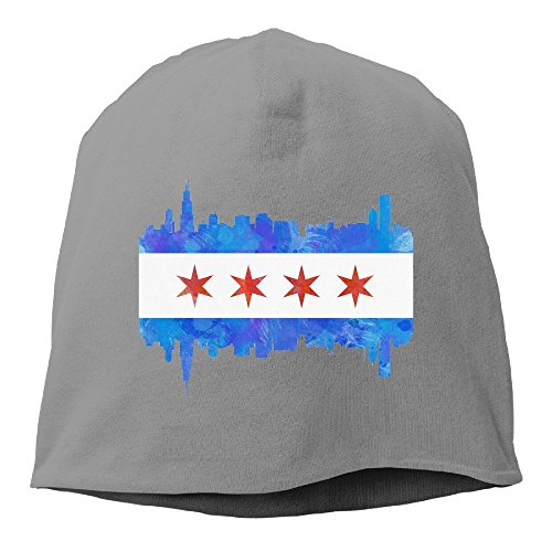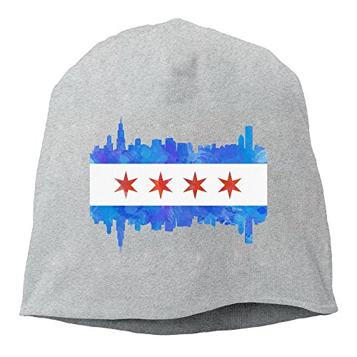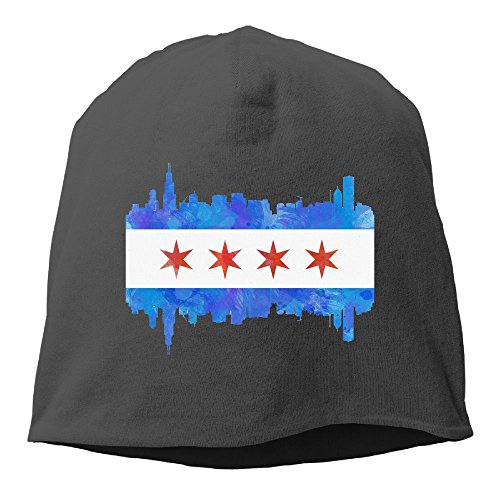 Chicago State Flag Watercolor City Skyline Unisex Knit Hat Soft Stretch Beanies Skull Cap Hedgi...