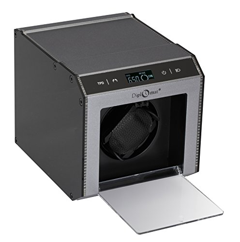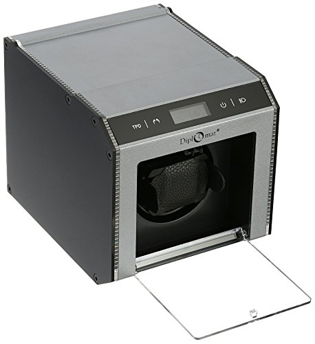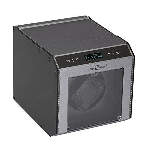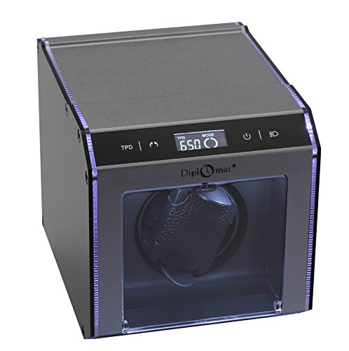 Studio : Diplomat Publisher : Diplomat Binding : Watch Product Description Diplomat Illuminum LED-Lit Aluminum Expandable Single Automatic Watch Winder with Timer Control and Touch Sensor Display. This Diplomat Illuminum LED Lit Single Watch Winder with Smart Internal Bi-Directional Timer Control and Touch Sensor Display is perfect for your most extravagant timepieces. From Rolex to Breitling to Movado along with countless others, watches come equipped with the world's most advanced automatic, perpetual movement. This beautifully crafted automatic watch winder box will keep your favorite automatic watch wound and ready for when you need them. The turntable is powered by a silent Japanese Mabuchi motor. The aluminum and acrylic exterior is accented by an internal LED light that illuminates through the body of the unit. In the front of the winder, you will find a see-through window which beautifully displays your illuminated timepiece. This winder is capable of winding one watch up to 58mm wide. Using the cable that arrives with the unit, you can purchase multiple units and power them all on the same adaptor. You simply plug one side of the cable into the OUT slot on the first unit and the other side of the cable into the IN slot on the second winder. This will allow you to power up to 9 units while only using one single adaptor/power source. In the top front of the unit, you will find a digital touch sensor LCD display. From this display, you can easily change the settings of your winder with just the delicate tap of your finger. This watch winder features five programmed turns per day (TPD) settings (650, 900, 1200,1500 or 1800 TPD) which prevents the winder from over-winding or straining the internal mechanisms of the watch. With each TPD setting, you can control the direction that the unit will turn (clockwise, counterclockwise, or a combination of both clockwise and counterclockwise). Seiko Kinetic watches cannot be used on a watch winder. The LED light on the unit can be turned on or off without having to turn the winding mo 0