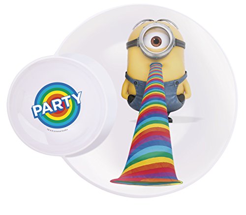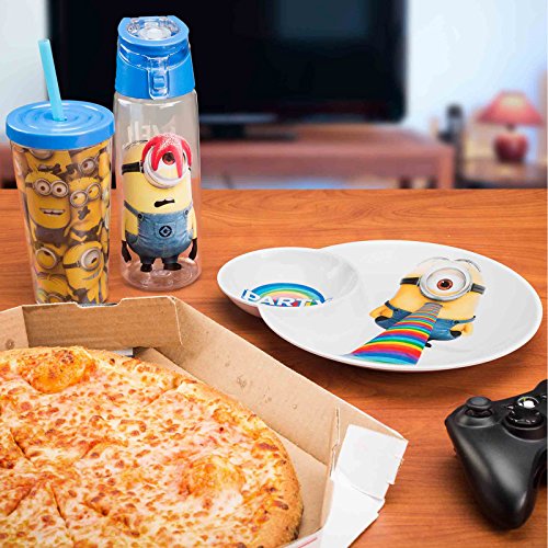 Zak! Designs Multi-Purpose Plate with Built In Dipping Sauce Dish featuring Despicable Me 2 Minions Graphics, Break-resistant and BPA-free Melamine, 11"