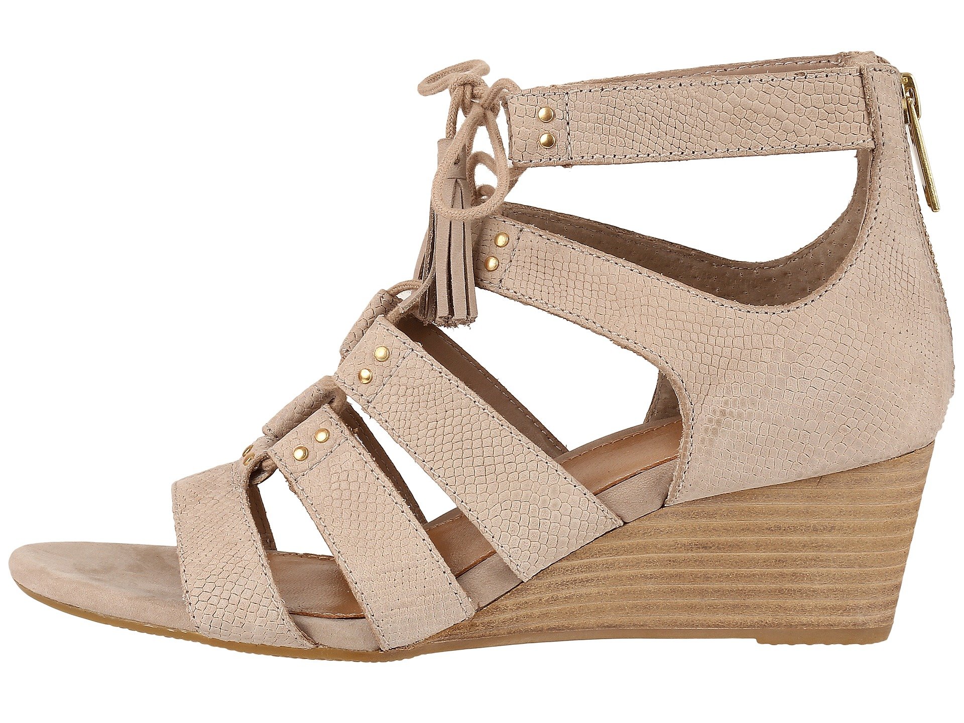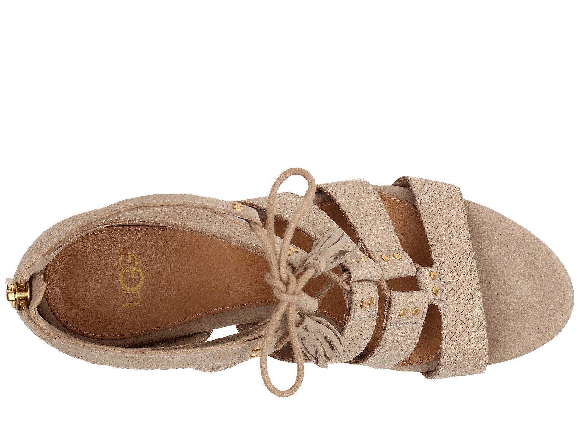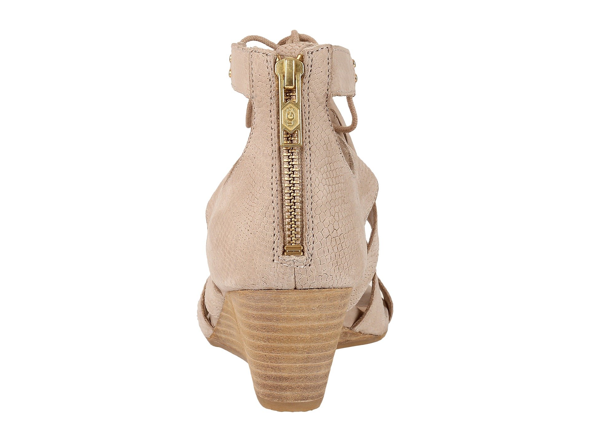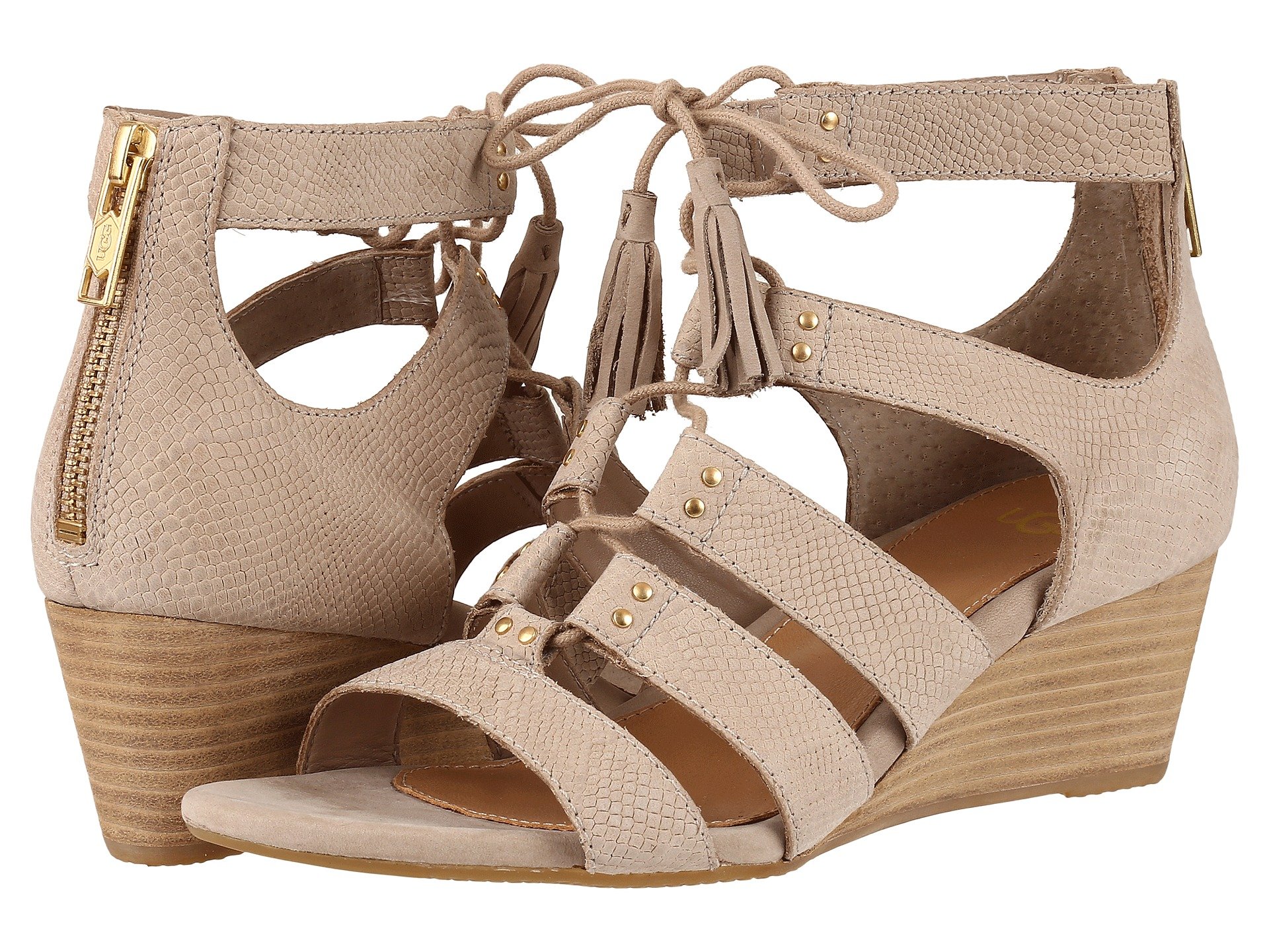 | Product Information SKU: #8807381This item is subject to quantity limitations.Don't hide your wild side, embrace it with the Yasmin Snake wedge by UGG?.Snake-embossed leather upper with swinging tassel details.Front tie and back zipper closure.Leather lining.PORON? insole with added arch support.Rubber outsole.Imported.Product measurements were taken using size 7, width B - Medium. Please note that measurements may vary by size.Weight of footwear is based on a single item, not a pair.Measurements: Heel Height: 2 1?4 in Weight: 10 oz |