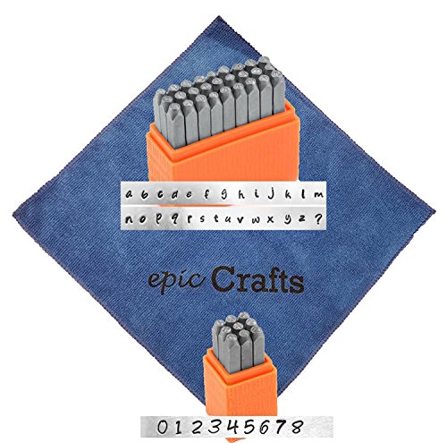ImpressArt Basic Bridgette Numbers Metal Stamp Set Bundled with Basic Bridgette Lowercase Metal Stamp Set and Epic Crafts Microfiber Cloth