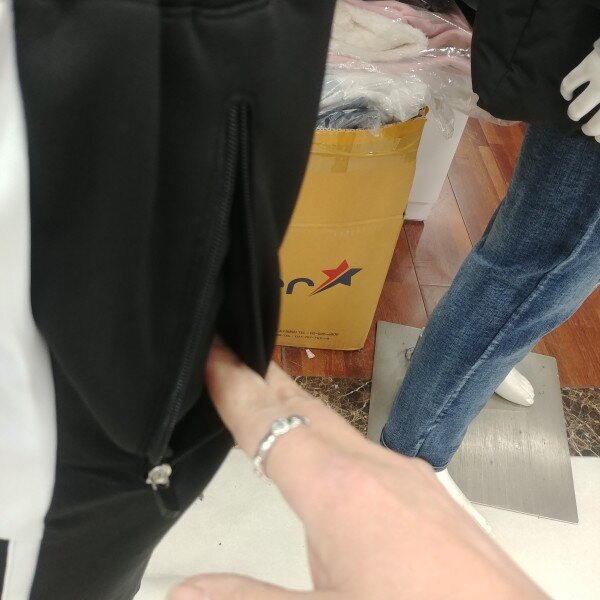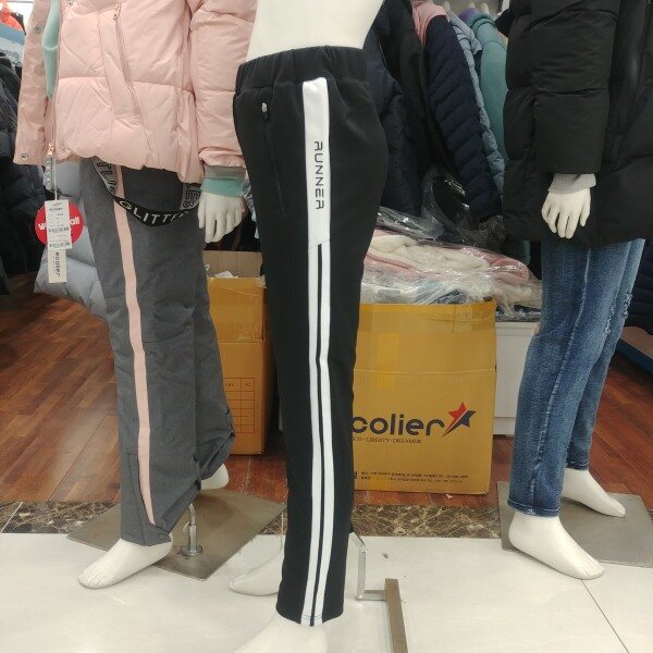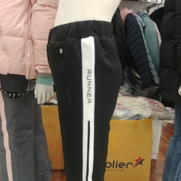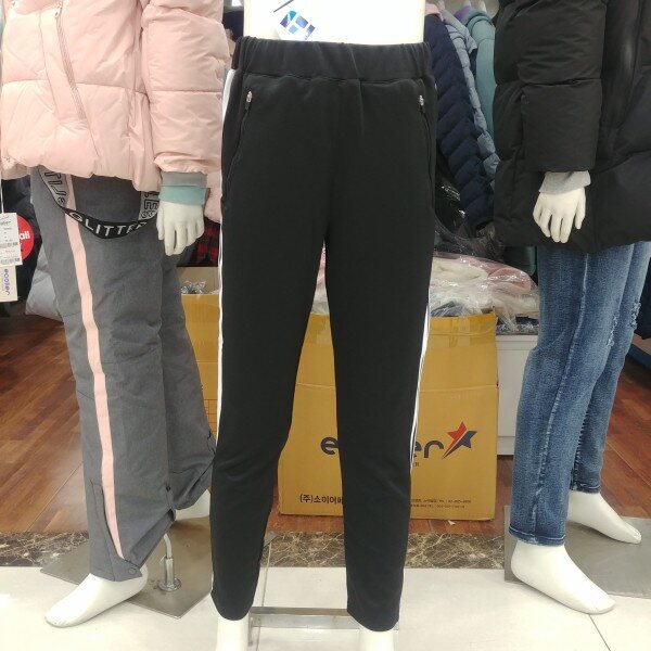 슬림핏의 기능성 트레이닝 바지입니다.블랙 바탕에 화이트 2선의 트랙이 포인트입니다.