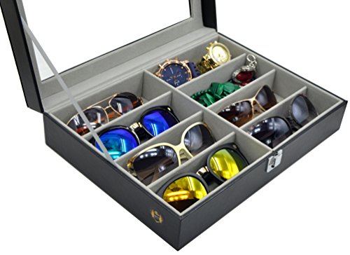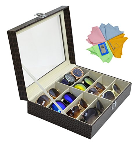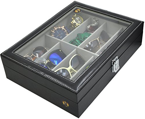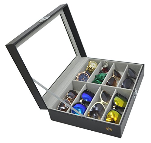 Perfect for storing and displaying your favorite eyeglasses and sunglasses in one convenient and attractive place, or use the case to store ties, jewelry coins, or a variety of collectibles