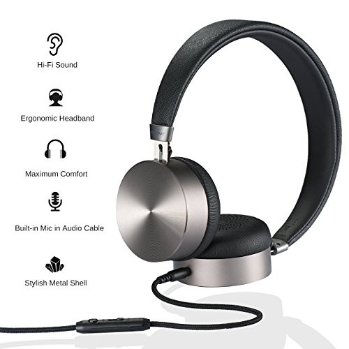 -. Title : Mpow HC1 On-Ear Headphones, Hi-Fi Stereo Earphones, Wired Metal Shell Headset with Built-in Mic , In-line Control for iPhone iPad Android Smartphones Laptop Tablet PC