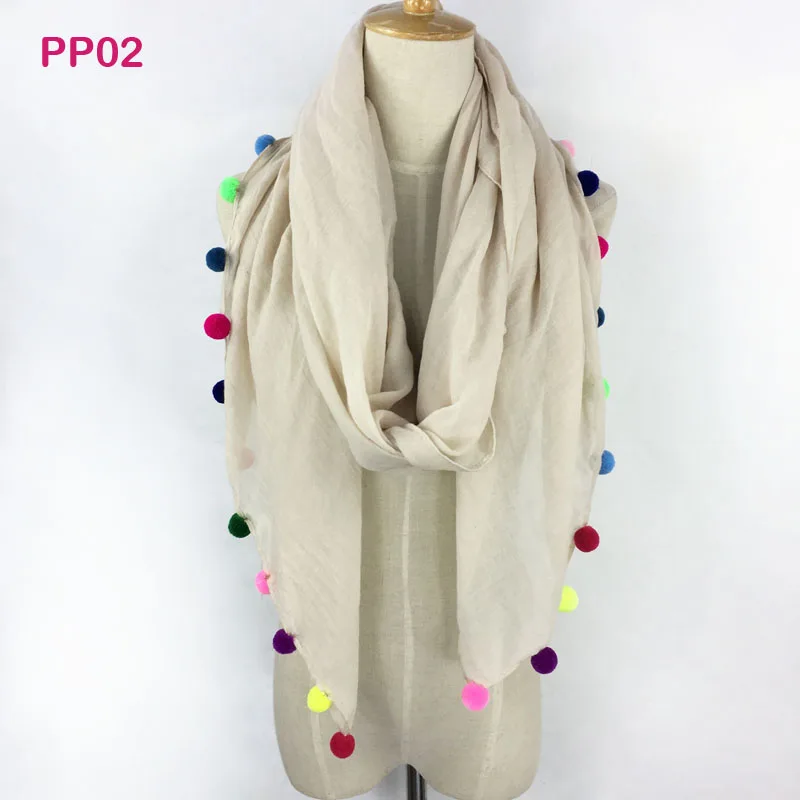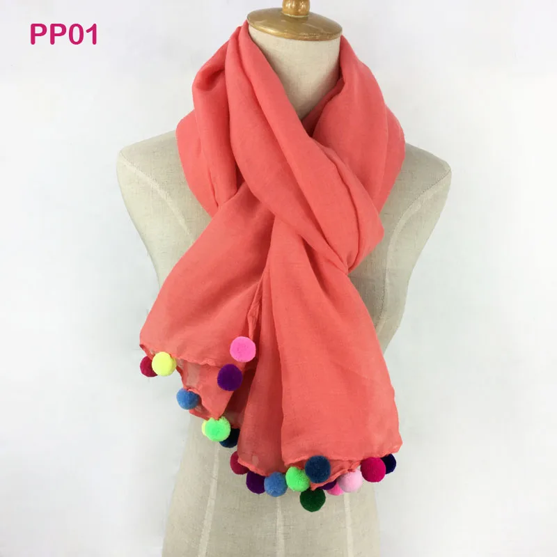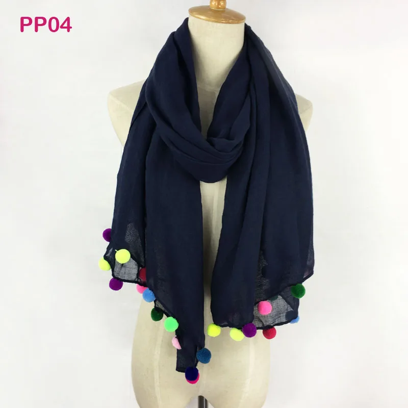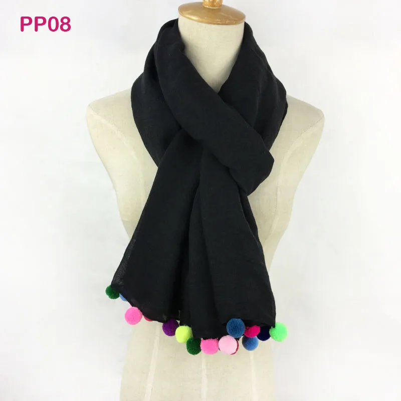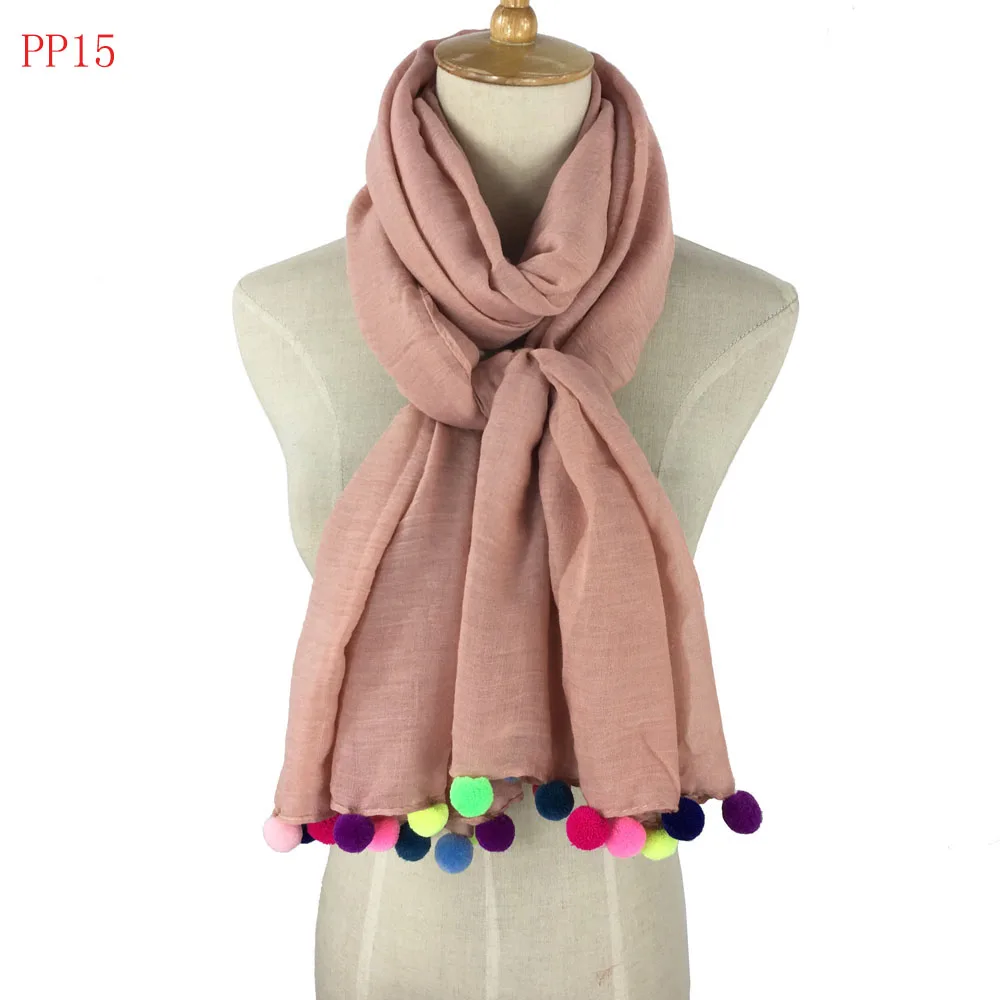 Product Name:Pom Pom solid color scarf