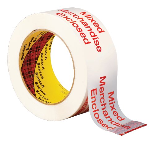 Scotch Printed Message MIXED MERCHANDISE Box Sealing Tape 3775 White, 48 mm x 100 m, Conveniently Packaged (Pack of 1)