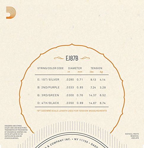 D'Addario EJ87B Titanium Ukulele Strings, Baritone