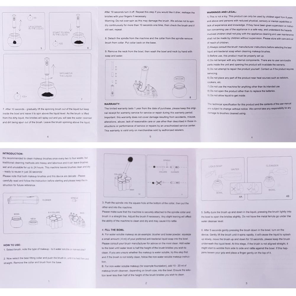 - Easy to use - Just three quick steps to clean makeup brushes. 1. Dip and Dunk 2. Spin to Rinse 3. Spin to Dry. Cleans and dries brushes in seconds, save you time, energy and keep your makeup brushes clean on a regular basis