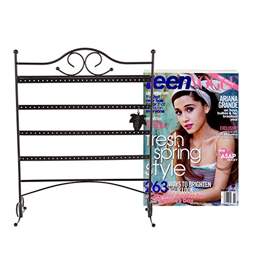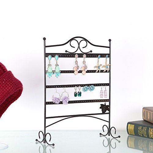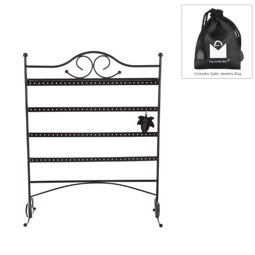 -. Binding : Kitchen -. Brand : MyGift -. Color : Black -. EAN : 0887702197548 -. Feature : A stylish metal jewelry hanger featuring classic black finish and an elegant curlicue design. / The 4 tiers that make up this metal earring organizer can hold and display up to 60 pairs of earrings. / Use this earring holder on your dresser, vanity, nightstand, or bathroom counter to keep your earring collection organized and each piece easy to find. / Official MyGIft® product features signature satin jewelry pouch / Approximate Dimensions: 11.6" W X 14.4" H X 3.9" D. -. Label : MyGift -. Manufacturer : MyGift -. MPN : TB-J0094BLK -. PackageQuantity : 1 -. PartNumber : TB-J0094BLK -. ProductGroup : Jewelry -. ProductTypeName : FASHIONNECKLACEBRACELETANKLET -. Publisher : MyGift -. Studio : MyGift -. Title : Decorative Black Metal 4 Tier Earring Hanger Organizer Display Stand -. UPC : 887702197548