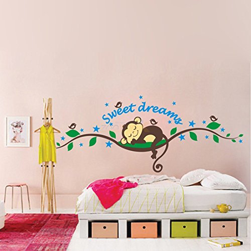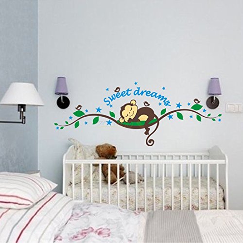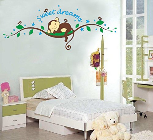 - Title : Sweet Dreams Sleeping Monkey Vine Birds Wall Sticker Home Decor Decals Mural Removable Nursery Baby Boys Girls Love