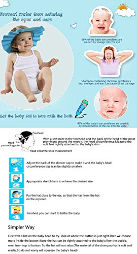 HanYun Baby Bath Set - Waterfall Rinser Rinse Cup + Baby Shampoo Shower Bathing Protect Soft Cap Hat + Baby Bath Tub Thermometer (Blue)