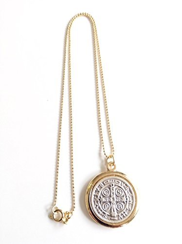 -. Title : Saint Benedict necklace gold plated chain 17"- 45 cm long medalla San Benito