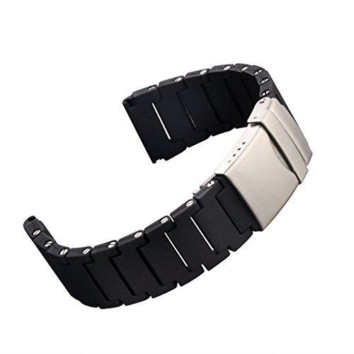 -. Feature : Replacement watch band for men 20mm.Bands fit Samsung Gear S2 Classic SM-R732,Moto 360 2nd Gen 42mm Watch Band,Pebble Time Round 20mm watch band. / 20mm polyurethane watch band,Made of high quality Polyurethane giving you a good wear experience.Black Stainless Steel Link Screws. / The maximum length (not included watch): about 185mm". The strap length can be adjusted according to your wrist. / Package Contents: 1x watch strap + 2 pins