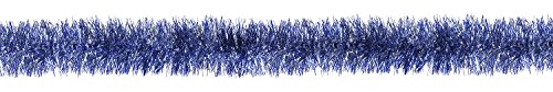 Product Description Beistle 55281-BS gleam 'N Tinsel garland. The package contains 1 Blue and silver gleam 'N Tinsel garland. It measures 4 inches long by 100 feet wide. This garland is great for decorating for any type of party! 0