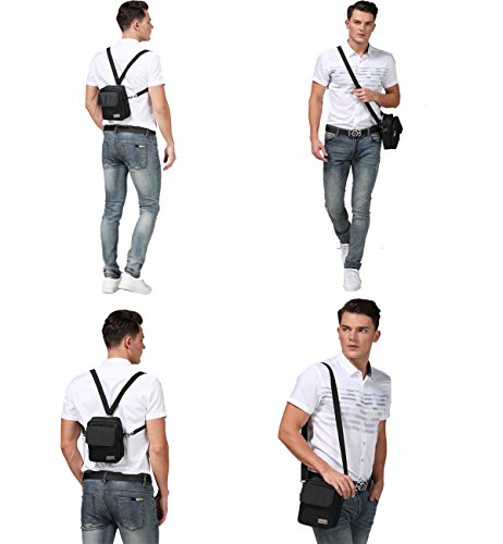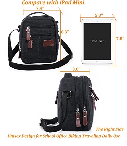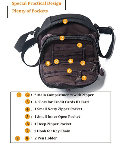 -. Feature : ★Main Material:Soft Canvas(outside) with leather buckle accentuated with bronze metal hardware+polyester fiber(lining). / ★Dimension: (L)7.25" x (W)0.5" x (H)9.25"Weight:13.75 ounce.the full length of this strap asjusts:41cm-76cm / ★Style: 2 neutral colors that suits every outfit. Can be worn as a sling bag, messenger bag, as a cross body bag and can be attached to your belt or bag. / ★Features: Comes with a quality metal carabiner on the back that can be easily attached to your belt or bag as an accessory bag. It has double belt loops and 1 shoulder strap is removable and adjustable.the full length of this strap is:40cm-76cm / ★Structure: It has 3 main compartments. Main zippered compartment offers bigger space. It has also one wall zip pocket inside. Another zippered compartment in front ,Front compartment with magnetic flap designed with leather buckles has 2 pockets, 1 open pocket for small stuffs that can be conveniently access and a zip compartment for more important things like wallet, cellphone, passports, ID cards, keys, etc.