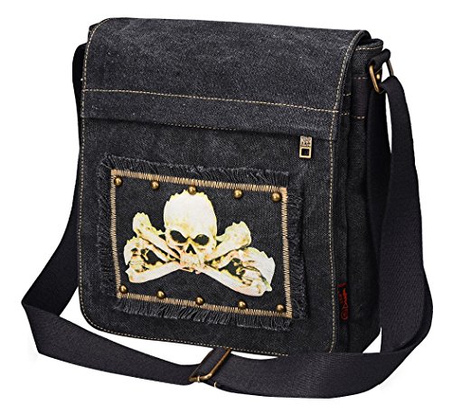 -. Title : Veenajo Skull Vintage Canvas Shoulder Messenger Bag Crossbody Bag Pack Organizer