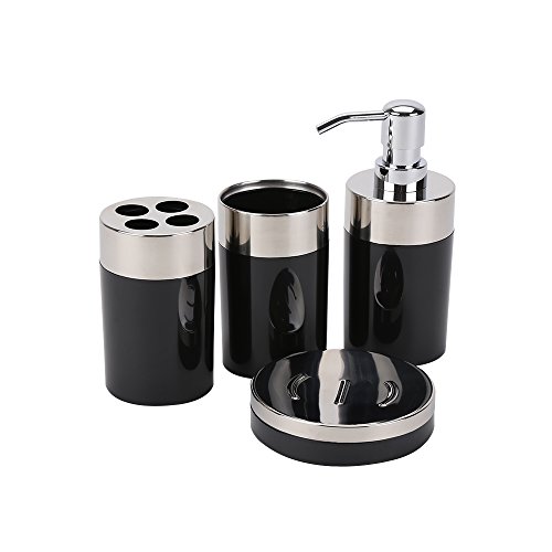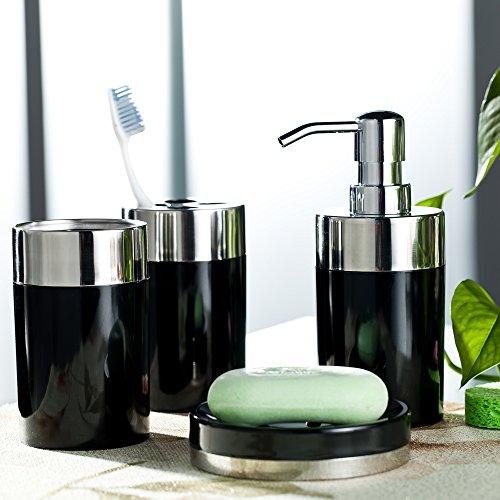 Bathroom Set Black, Includes Soap Dispenser, Toothbrush Holder, Bathroom Tumbler, Soap Dish 4 Pieces