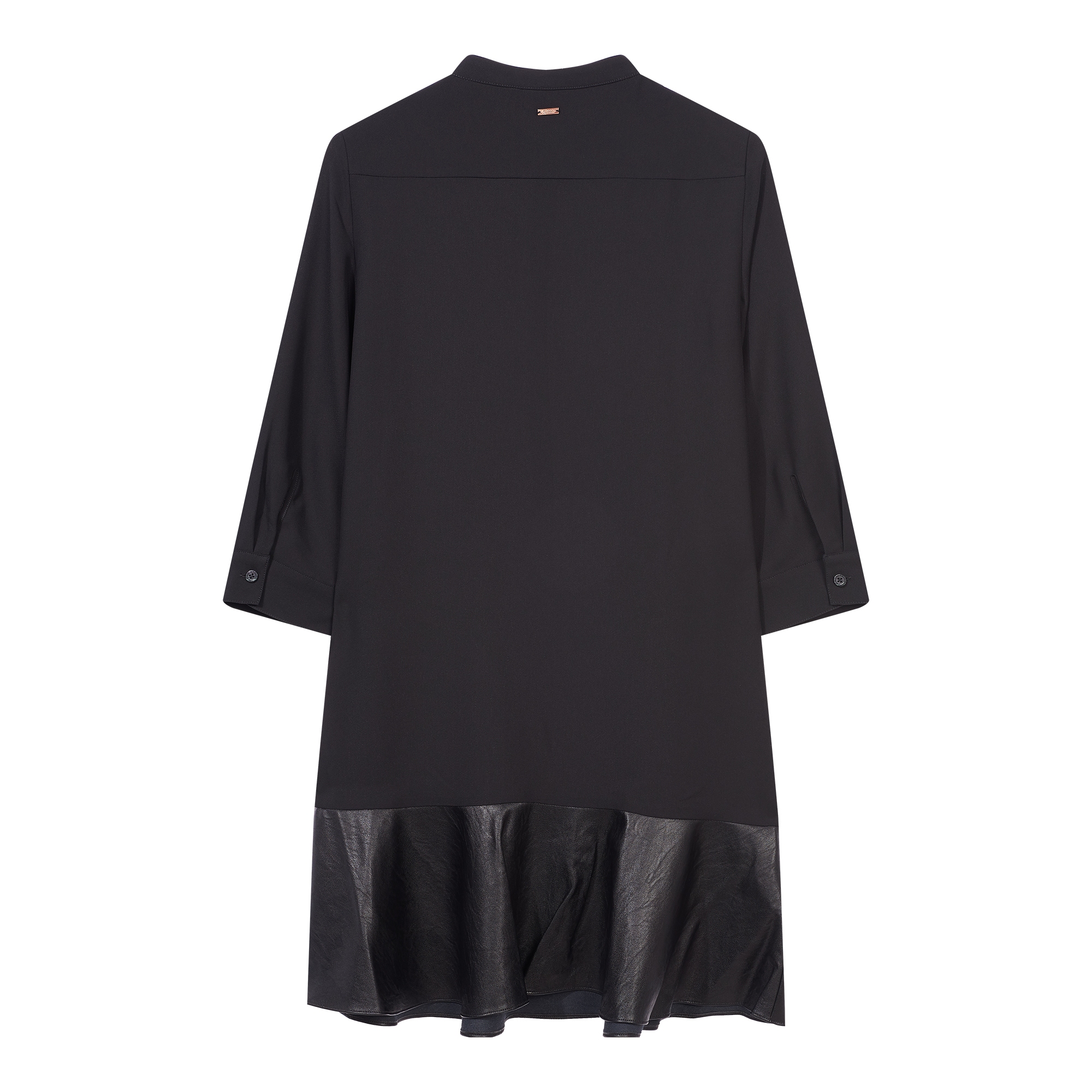 컬렉션 : 2017 Fall/Winter 디자인 포인트 : - 페미닌한 무드의 레더 플레어 디테일이 돋보이는 원피스- 레더 소재 배색으로 트렌디한 느낌을 주는 디자인- 헨리넥 디테일의 깔끔한 포인트를 가진 아이템- 버튼 클로징 디테일이 있어 착용이 간편한 상품 스타일링 추천 : 단독으로 플랫슈즈 혹은 스니커즈와 다양한 액세서리를 매치하여 트렌디한 페미닌룩 스타일링을 연출 할 수 있음