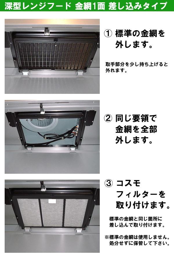| 素材・材質 | 取り付け枠:スチール(黒焼付塗装) フィルター:ガラス繊維 |