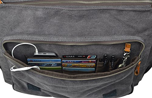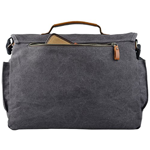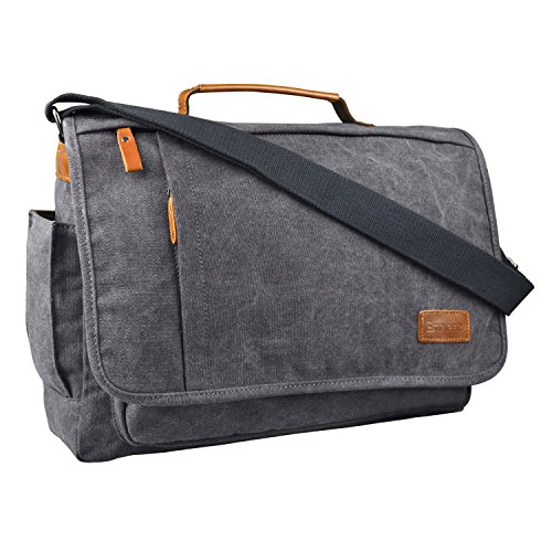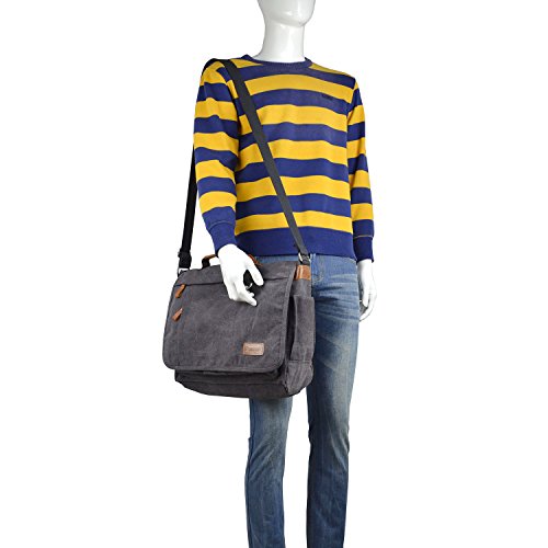 -. Brand : Estarer -. Color : Dark Grey-style 2 -. Department : unisex-adult (novelty and lage only) -. EAN : 0799559864989 -. Feature : Estarer messenger bags are made of thick canvas with high quality, size:17.72" L x 13.38" H x 5.12" W / Perfect and practice construction. A total of 10 pockets. 1 x main zipped pockets, 1x exterior rear zipped pockets, 3x front zipped pockets and 2 side pockets / The main compartment accommodate one A4 folder, separate laptop compartment fit 15.6 inch notebook / 1x metal ring for keys,1x hole with a grommet to run headphones through,2x Pen Holder,8 x Credit pouches, / Adjustable cross body strap makes it comfy to wear , Velcro tabs in front flap ensure it to safe -. ProductGroup : Apparel -. ProductTypeName : LAGE -. Title : Estarer Canvas Shoulder Bag 15.6 Inch Vintage Laptop Messenger Bags Unisex -. UPC : 799559864989