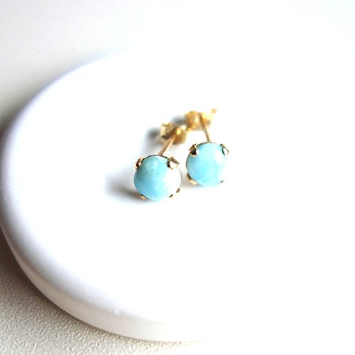 -. Title : ラリマー ラウンド カボション 5mm ポスト ピアス 14 金 ゴールド フィルド 14 kgf ※ 刻印入り