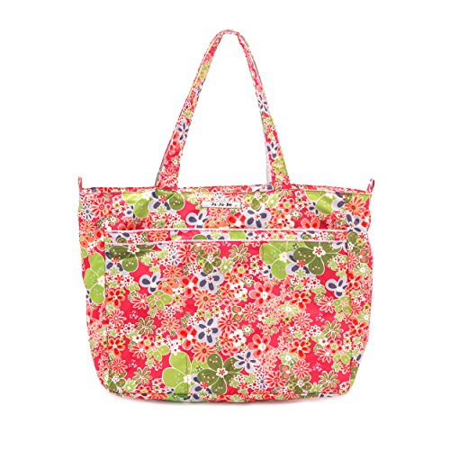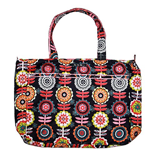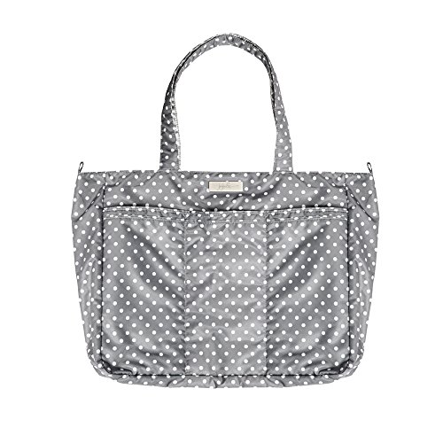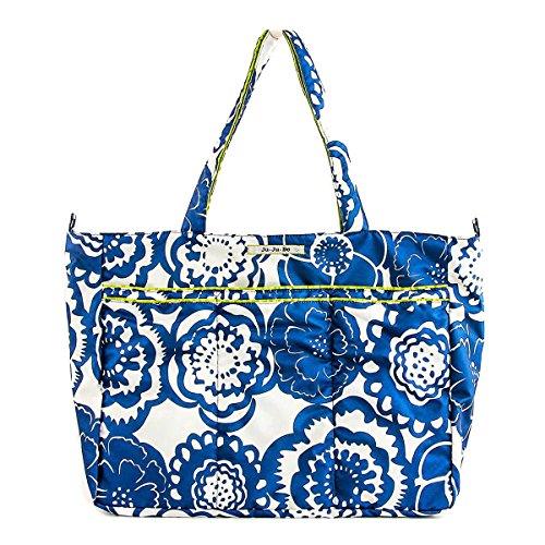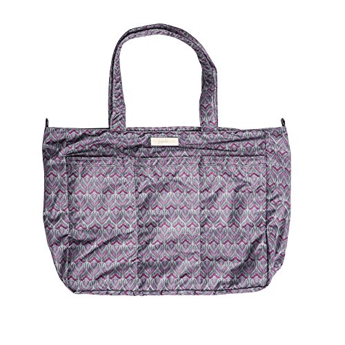 The Ju-Ju-Be Super Be Zippered Tote Diaper Bag is chic, smart, ultra-light and functional with extra pockets for added versatility. This tote has SUPER powers! It’s SUPER cute! It’s SUPER light! It’s SUPER stuffable! It’s SUPER versatile! Does it have X-Ray vision? No, but its zippered top will help you get through the X-ray machine at the airport faster than a speeding bullet. The Super Be’s inner lining is protected with an Agion natural antimicrobial treatment that inhibits and reduces the growth of odor-causing bacteria, mold and mildew. The outer fabric is treated with Teflon fabric protector, making it easy to repel stains and keep the Super Be clean. In addition to the spacious interior, the Super Be has (7) additional pockets for keeping you ultra-organized and a 12-inch drop strap. The front of the Super Be has (3) extra pockets, (2) of which are tall enough to hide your water bottles, and a center zipper pocket for your smartphone or car keys. The main zippered section is large enough for diapers, wipes, extra clothes, soft toys and other items needed. Inside the bag there are (2) interior mesh pockets and an extra-long attached key clip. The large back pocket is perfect for magazines or your children's books and is designed with a snap closure. The tote features Royal Envy patterned fabric and silver colored metal hardware. This bag is machine washable and measures 18-inches by 15-inches by 5.5-inches in size. The Ju-Ju-Be Super Be Zippered Tote Diaper Bag comes with a 90-day limited warranty that protects against manufacturing defects. Founded in 2005, Ju-Ju-Be is a Southern California company that fuses science, style, and attitude to create diaper bags, purses and other accessories that are both fashionable and fun.Feature