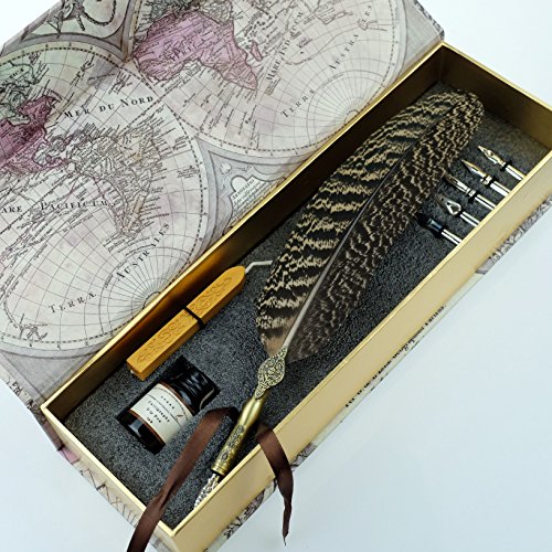 Unique Beautiful Feather Calligraphy Dip Pen Set Writing Quill Pens GCLL02