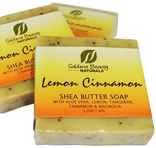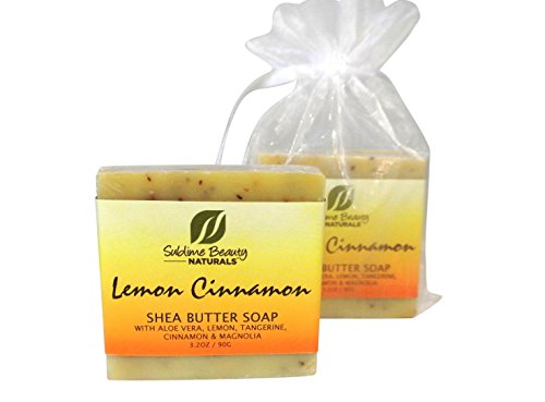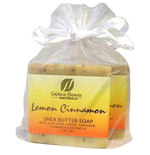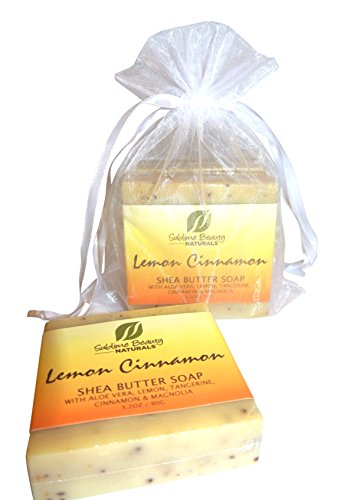 Freshest LEMON CINNAMON Shea Butter All-Natural Soaps (2) Two in Pouch, 3.2 oz. With Essential Oils, Coconut and Aloe. (1 PACK OF 2)